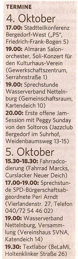 Bergedorfer Zeitung 4.10.16 – Termine Bergedorfer Zeitung 4.10.16 – Termine Von Peter Storm|2018-06-24T13:43:38+02:00Juni 23rd, 2018|Kommentare deaktiviert für Bergedorfer Zeitung 4.10.16 – Termine Share This Story, Choose Your Platform! FacebookTwitterRedditLinkedInWhatsAppTumblrPinterestVkE-Mail Über den Autor: Peter Storm