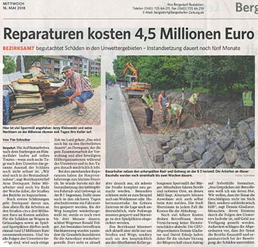 Bergedorfer Zeitung über den Starkregen 10. Mai 18