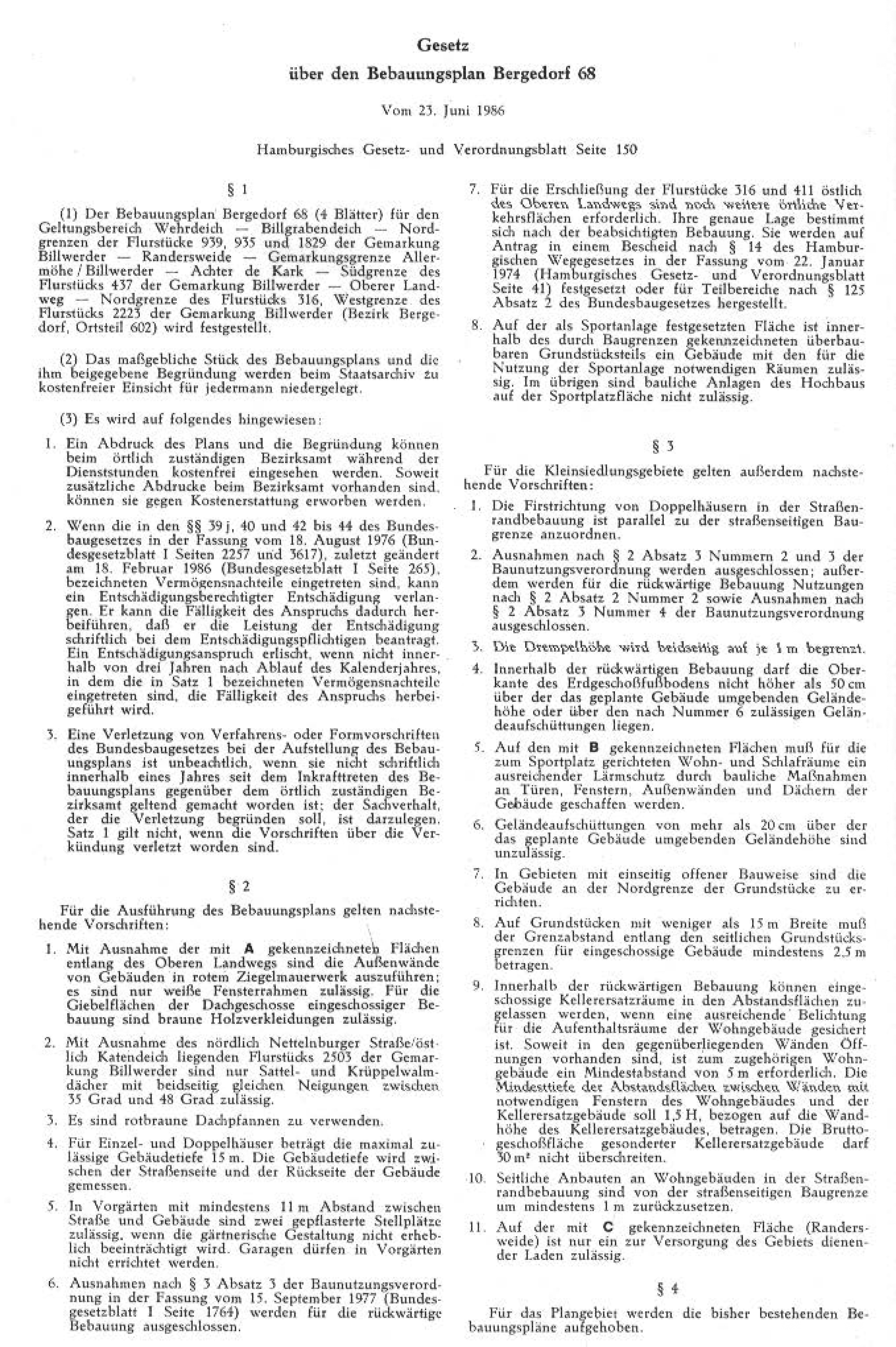 Bebauungsplan Bergedorf 68 Text