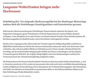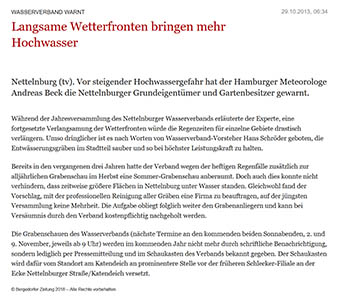 Bergedorfer Zeitung 29.10.13 Wasserverband warnt Langsame Wetterfronten bringen mehr Hochwasser